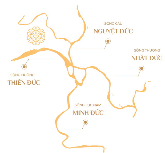 Dòng sông Thiên Đức uốn lượn mềm mại, dễ dàng liên tưởng đến hình ảnh Rồng thời Lý, với đầu rồng hướng về kinh đô Thăng Long, Rồng chầu nhả ngọc.
